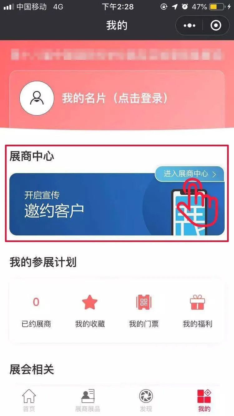 STEP 4:展商可以點擊首頁右下角「我的」進入「展商中心」,可以查看并修改基本信息、管理展品、活動,開啟邀約客戶。