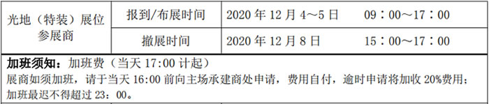 加班:展館方不接受各參展商單獨申請,如有加班,展商向所在區(qū)域的承建商申請,承建商向統(tǒng)籌科統(tǒng)一下單,由統(tǒng)籌科負責以工作單方式在16:00前通知客服中心相關部門,請憑單安排加班服務,并對辦理加班手續(xù)的參展商及相關車輛給予放行。
