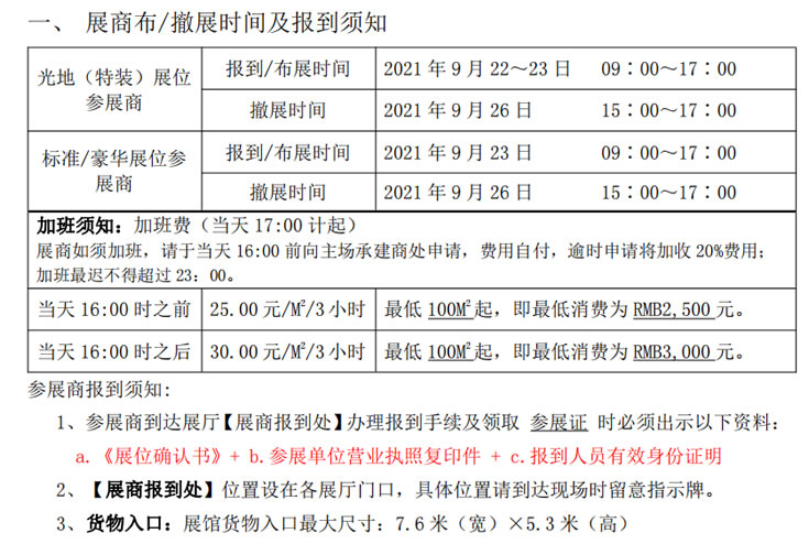 注意事項:所有參展商,在進場、離場和展覽會舉行期間,必須佩戴本次大會所發(fā)相應證件,證件于 2021年09月22-23日在展商報到處領取。