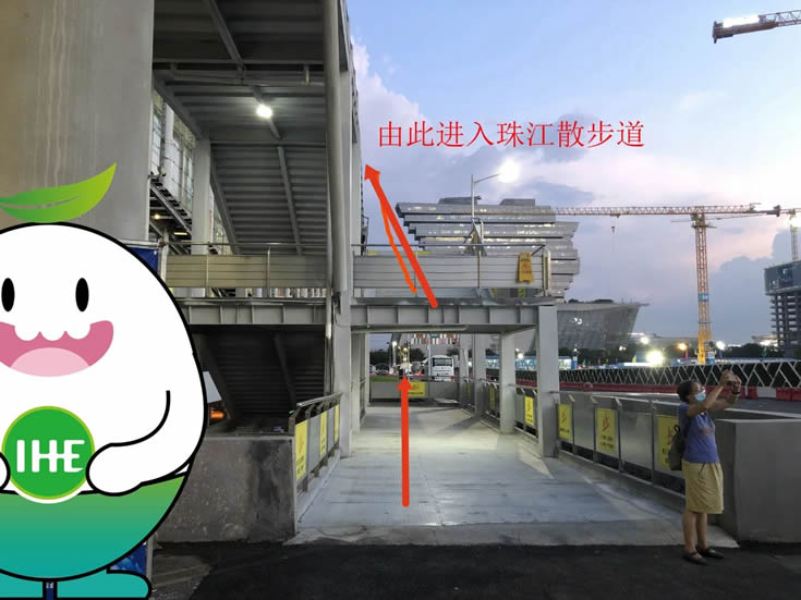 由此上樓進入珠江散步道,至6-7/6-8服務臺辦理證件