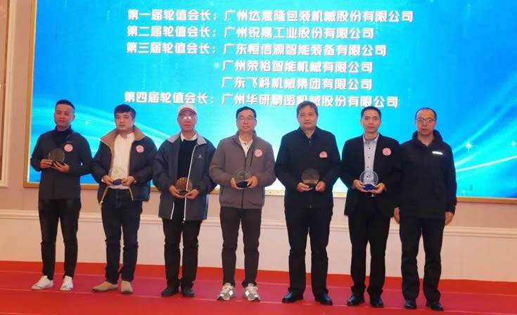 年會期間,廣東省食品和包裝機械行業(yè)協(xié)會還舉行了第四屆輪值會長交接儀式系列活動,廣州華研精密機械股份有限公司榮獲此次輪值會長單位。