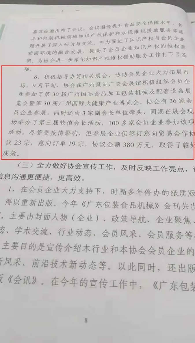 9月下旬,廣東省食品和包裝機械行業(yè)協(xié)會組織36家會員企業(yè)參展,同時還由3家副會長單位牽頭、同期在展會現(xiàn)場舉辦了第三屆輪值會長活動、100多家會員企業(yè)參加該項活動。盡管受疫情影響,參展企業(yè)仍簽訂意向貿易合作協(xié)議23宗,意向訂單19宗,協(xié)議金額380萬元。
