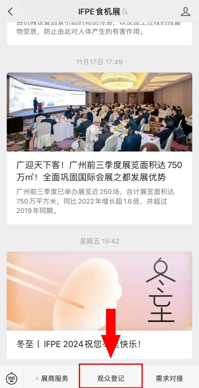 01?關(guān)注官方微信公眾號步驟1:關(guān)注官方公眾號“IFPE食機展” |