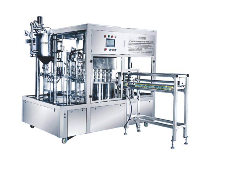 全自動(dòng)自立袋灌裝旋蓋一體機(jī),適用于果醬、果凍果汁、酸奶豆?jié){、等液體醬料類的高速包裝。自動(dòng)完成上袋、吹氣、灌裝、上蓋、旋蓋、成品輸出的工序。