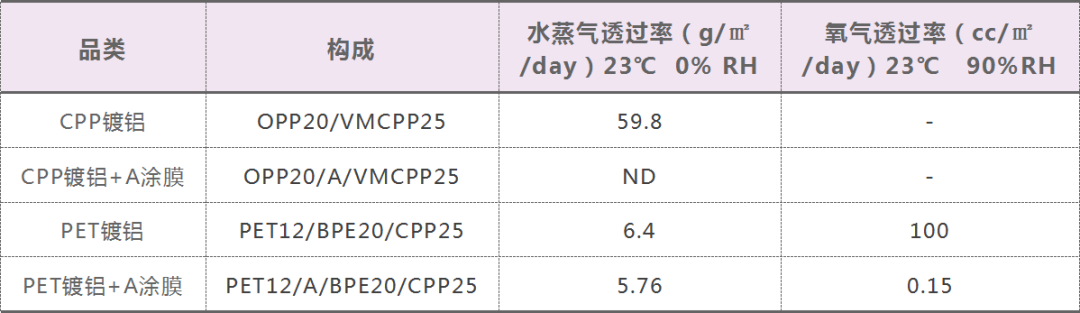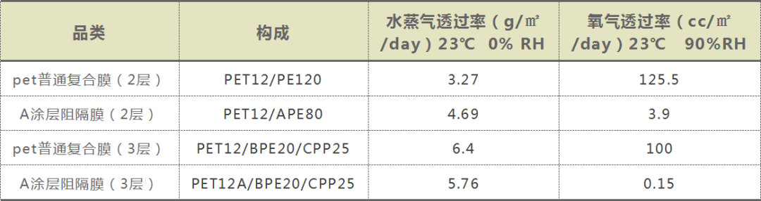 PVA高阻隔涂膜和pet普通復(fù)合膜的阻隔性數(shù)據(jù)對比