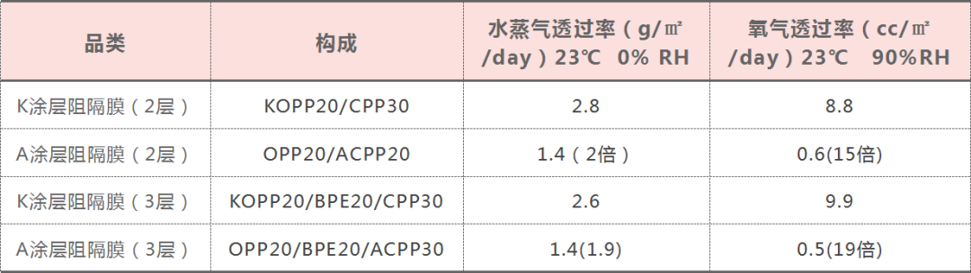PVA高阻隔涂膜和k涂層膜的阻隔性數(shù)據(jù)對比