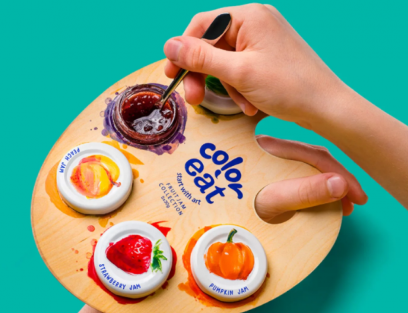 用調(diào)色板來組合包裝果醬,產(chǎn)品充滿了童趣