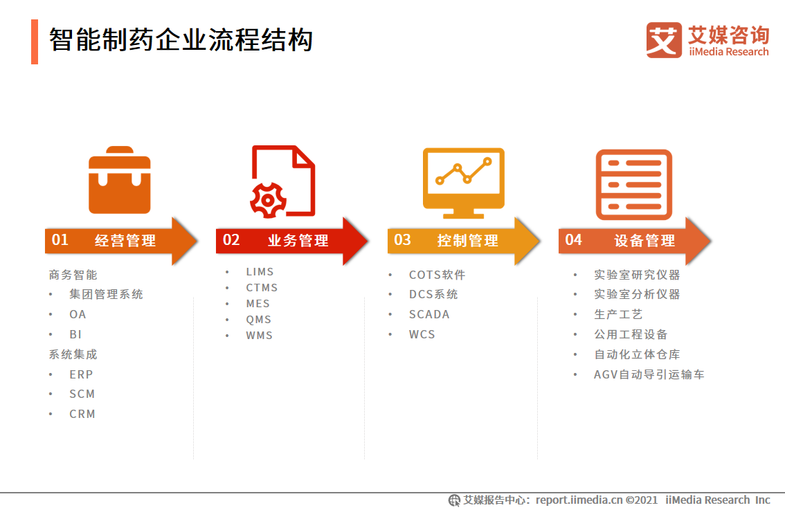 智能制藥企業(yè)涉及企業(yè)資源管理系統(tǒng)(ERP)、制造執(zhí)行系統(tǒng)(MES)、傳感器、執(zhí)行器等多個系統(tǒng),各系統(tǒng)環(huán)環(huán)相扣,與技術(shù)和流程方面的相互依賴。具體分為包含集團(tuán)管理系統(tǒng)、OA、ERP等的經(jīng)營管理層面、包含LIMS、CTMS、MES等的業(yè)務(wù)管理層面、包含COTS軟件、DCS系統(tǒng)等的控制管理層面和包含實驗室研究和分析儀器等的設(shè)備管理層面。