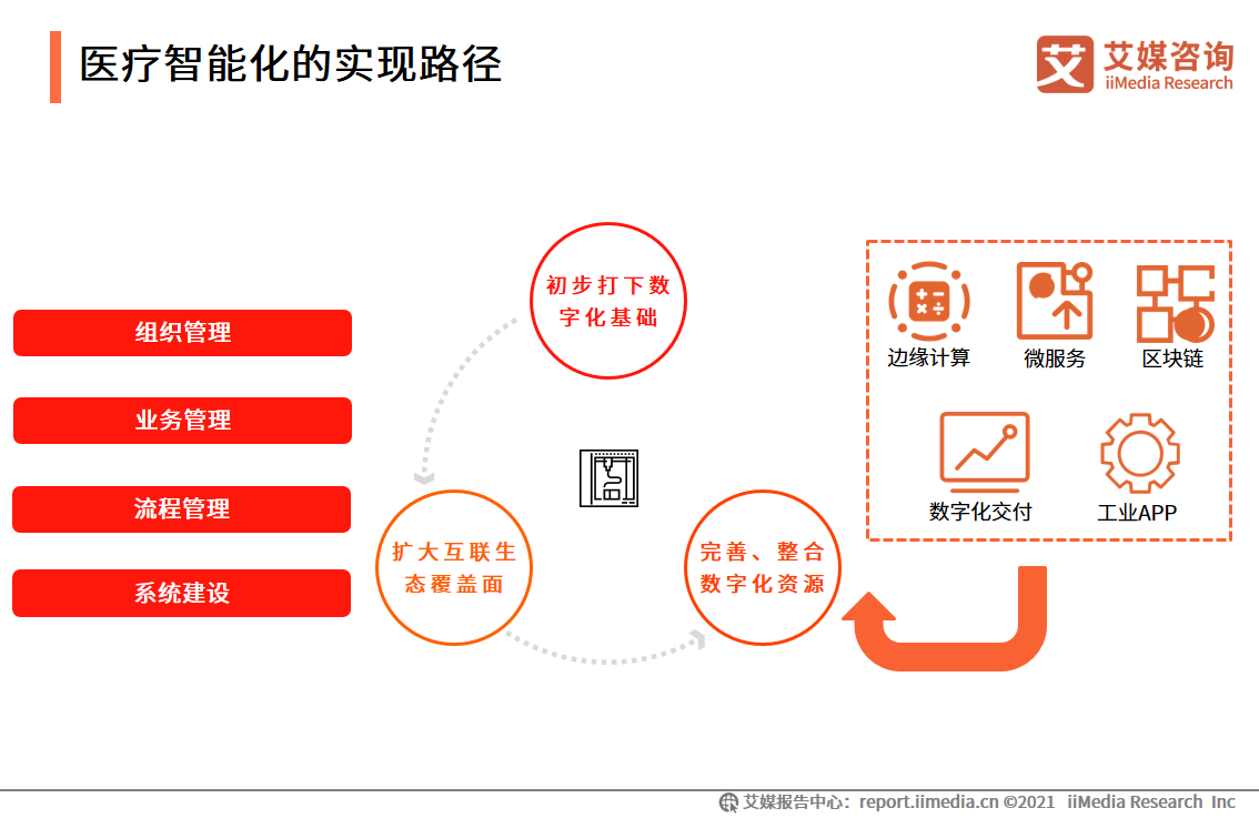 醫(yī)療行業(yè)智能化是個漫長的過程。企業(yè)應(yīng)當(dāng)根據(jù)自身發(fā)展情況和規(guī)劃,將智能制造納入企業(yè)發(fā)展戰(zhàn)略計劃中。在某些板塊達(dá)成互聯(lián)的情況下,為數(shù)字化打下基礎(chǔ),實現(xiàn)更深層次的應(yīng)用,并延伸至更高管理層級的擴大互聯(lián)生態(tài)覆蓋面階段。根據(jù)企業(yè)自身情況進(jìn)行的完善整合資源等階段目標(biāo),利用邊緣計算、數(shù)字化交付等技術(shù)進(jìn)行數(shù)據(jù)采集、信息交流和儲存,最大化利用技術(shù)資源,通過進(jìn)行組織管理、業(yè)務(wù)管理、流程管理和系統(tǒng)建設(shè)的革新分階段推進(jìn)。