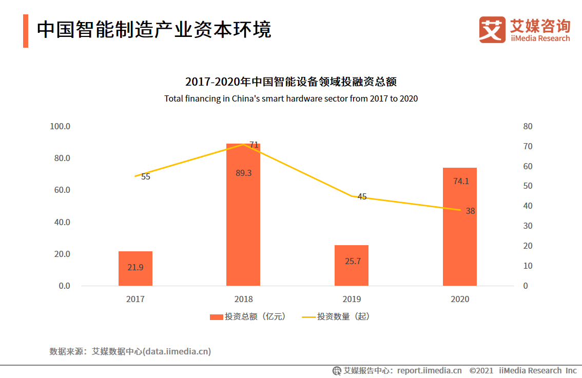 iiMedia Research(艾媒咨詢)數(shù)據(jù)顯示,中國智能制造領(lǐng)域投融資總額度和投資數(shù)量分別從2018年的89.3億元和71起后回落至2020年的74.1億元和38起;而2019年中國智能制造A輪前融資事件中,A輪前后融資額(A輪、Pre-A輪、A+輪)占總數(shù)量的約47.0%。艾媒咨詢分析師認(rèn)為,投資總額和數(shù)量體現(xiàn)出資本對于智能制造領(lǐng)域保持關(guān)注,但是投資決策逐漸回歸理性,投資逐漸集中于有一定技術(shù)和業(yè)務(wù)基礎(chǔ)的優(yōu)秀公司;而行業(yè)融資輪次分布體現(xiàn)出行業(yè)尚處起步階段,還有巨大潛力有待挖掘。