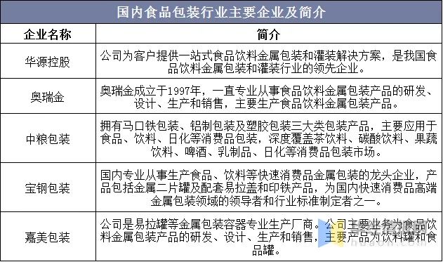 國內(nèi)食品包裝行業(yè)主要企業(yè)及簡介