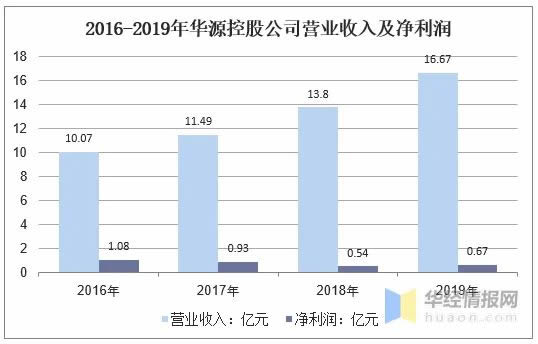 2017-2019年華源控股公司營業(yè)收入及凈利潤