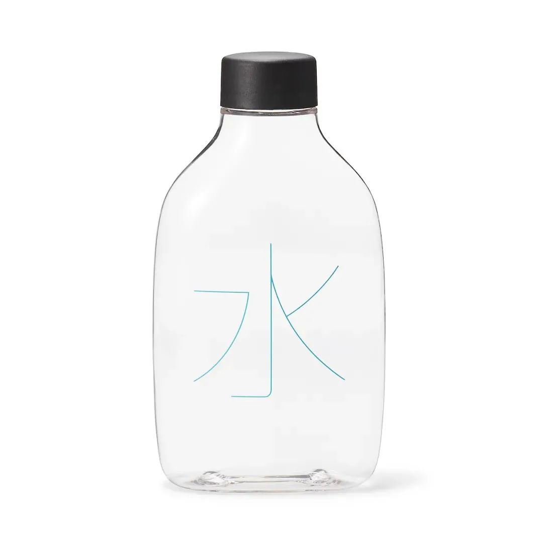 為了輕便好攜帶,muji將水瓶設(shè)計(jì)成扁平狀,加上標(biāo)志性的簡約設(shè)計(jì),瓶身印了一個(gè)巨大的“水”字。