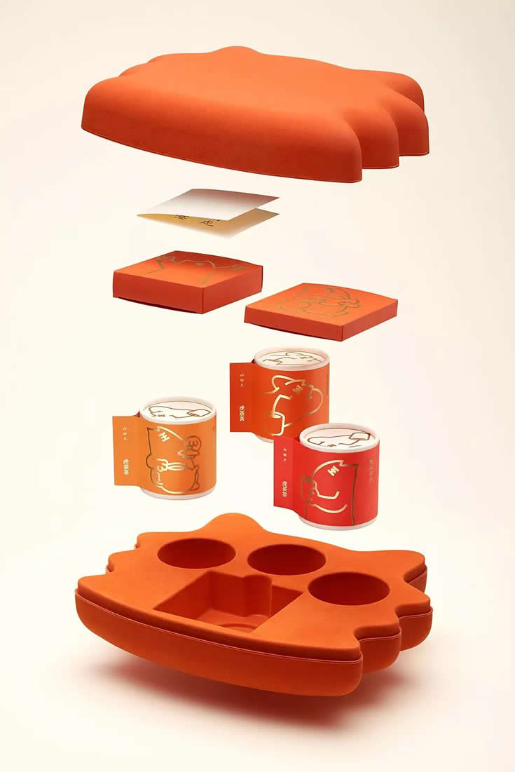 禮盒包裝突破原有的對(duì)稱形狀,不是方形,圓形等常規(guī)禮盒,而是根據(jù)2022虎年的特點(diǎn),設(shè)計(jì)為虎臉形狀的異形禮盒。禮盒的顏色也采用了老虎身上的橙色,這個(gè)禮盒拿在手上,好像也為寒冷的冬季帶來了一份溫暖。