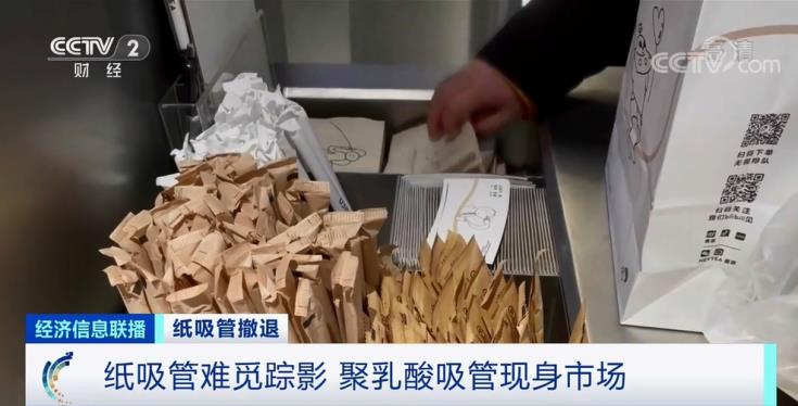 在北京的一家商場(chǎng),記者走訪多家連鎖飲品門(mén)店發(fā)現(xiàn),曾經(jīng)風(fēng)靡的紙吸管,已經(jīng)很少見(jiàn)到蹤影,一種叫作PLA的可降解吸管占據(jù)了主流。這些吸管的外包裝上標(biāo)注:PLA吸管也叫聚乳酸吸管,它以玉米、小麥、木薯等植物中提取的淀粉為原料,可以全生物降解。