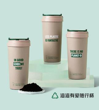 2021年全球地球日,星巴克推出新品“渣渣杯”包裝,該包裝是通過自主研發(fā),回收咖啡渣進行脫水和烘干處理,將咖啡渣代替部分PP塑料粒子制作而成(材料中咖啡渣含量超過30%)。不同于純PP塑料的光滑手感,它有著細微紋路,帶自然淡棕色,表面有微微的起伏。拿到手的時候,甚至能聞到淡淡的咖啡香氣。