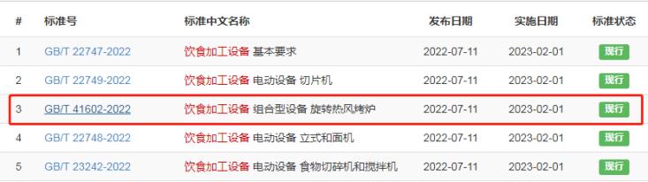 另有一項新國標《飲食加工設(shè)備 組合型設(shè)備 旋轉(zhuǎn)熱風烤爐》正式實施。