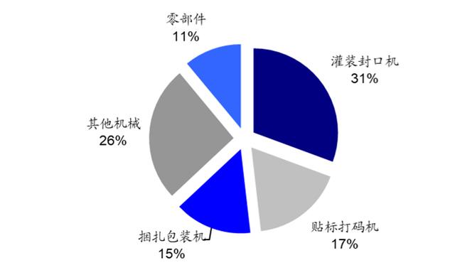 包裝機(jī)械在我國屬于新興行業(yè),起步較晚,經(jīng)過30多年的發(fā)展,現(xiàn)已成為機(jī)械工業(yè)中的十大行業(yè)之一。近年來,在我國人均消費(fèi)水平提高、消費(fèi)需求升級換代的持續(xù)拉動(dòng)下,食品、飲料、醫(yī)藥、化工、家用電器、造幣印鈔、機(jī)械制造、倉儲物流、建筑材料、金屬制造、造紙印刷、圖書出版等眾多行業(yè)領(lǐng)域生產(chǎn)企業(yè)把握發(fā)展機(jī)遇,不斷擴(kuò)大生產(chǎn)規(guī)模,提高市場競爭力,為我國包裝機(jī)械行業(yè)快速發(fā)展提供了有效保障。從行業(yè)規(guī)模來看,行業(yè)整體規(guī)模自2013年起開始穩(wěn)步增長;從下游應(yīng)用領(lǐng)域來看,國內(nèi)包裝設(shè)備終端應(yīng)用領(lǐng)域結(jié)構(gòu)與全球結(jié)構(gòu)類似,前三大領(lǐng)域同樣為食品、飲料以及醫(yī)藥行業(yè),占比分別為33%、21%、11%。對于包裝設(shè)備大行業(yè)而言,灌裝封口機(jī)、貼標(biāo)打碼機(jī)和捆 扎包裝機(jī)占比過半,是最主要的市場。
