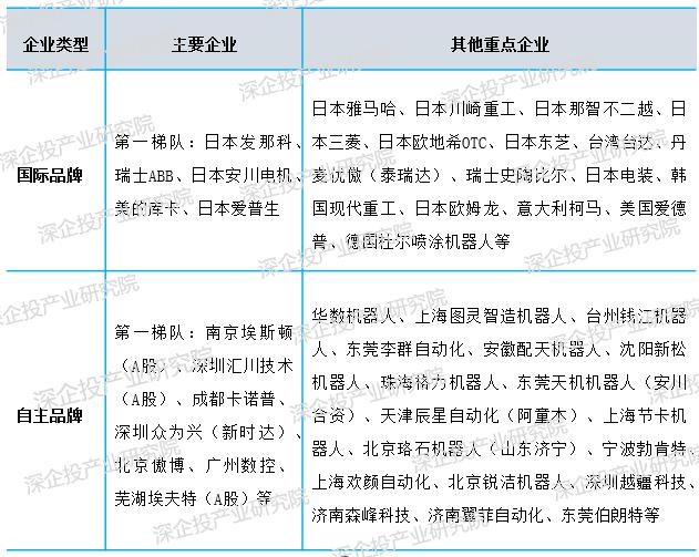 我國工業(yè)機器人本體的主要企業(yè)梯隊如下表所示。