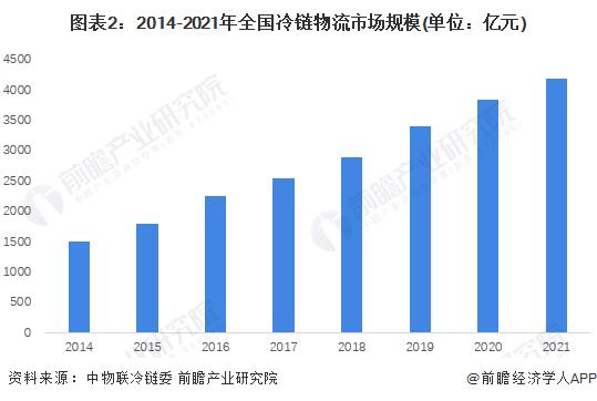 2021年國內(nèi)生鮮零售市場總額超過5.4萬億元,同比漲幅突破8%,呈穩(wěn)步增長態(tài)勢。這些增加的生鮮零售市場規(guī)模必然要依靠冷鏈物流運輸,因此帶動了我國冷鏈物流市場規(guī)模持續(xù)增長。根據(jù)中物聯(lián)冷鏈委給出的數(shù)據(jù),2021年我國冷鏈物流市場達到9.2%的增速,市場規(guī)模達到4184億元。