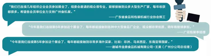 展會(huì)現(xiàn)場各大展商均攜來“食品加工機(jī)械”、“食品包裝設(shè)備”、“食品飲料機(jī)械”、“包裝材料”、“配套器材”、“包裝印刷機(jī)械”這些當(dāng)紅熱門領(lǐng)域的包裝生產(chǎn)線、容器和材料,現(xiàn)場人流如織,展商觀眾交流熱火朝天,現(xiàn)場簽單喜報(bào)多!